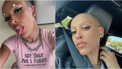 “دوجا كات” مغنية الراب المشهورة تحلق شعرها على المباشر.