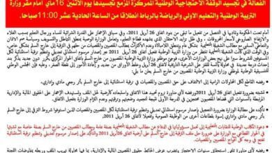 التنسيقية الوطنية لموظفي وزارة التربية الوطنية المقصيين من خارج السلم تعلن إضرابا وطنيا