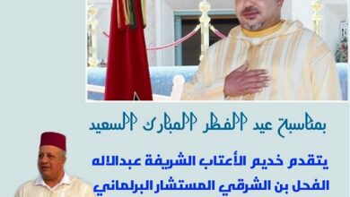 برقية تهنئة مرفوعة إلى السدة العالية بالله جلالة الملك محمد السادس بمناسبة عيد الفطر المبارك السعيد