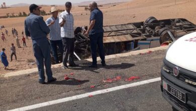 اقليم شيشاوة: 4 قتلى و 53 مصاب في حصيلة أولية لحادثة اصطدام حافلة ركاب مع شاحنة كبيرة الحجم.